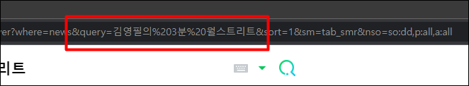 url = f'https://search.naver.com/search.naver?where=news&query=%EA%B9%80%EC%98%81%ED%95%84%EC%9D%98%203%EB%B6%84%20%EC%9B%94%EC%8A%A4%ED%8A%B8%EB%A6%AC%ED%8A%B8&sort=1&sm=tab_smr&nso=so:dd,p:all,a:all'