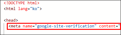 HTML 태그 방식을 눌러보시면, 메타 태그를 제공하는데요. 이 것을 복사하신 뒤 블로그의 head 섹션에 붙여 넣기 해주시면 됩니다. (※ 블로그에 메타 태그를 붙여 넣기 전까지 확인 버튼을 누르지 않고 창을 열어두셔야 합니다.)