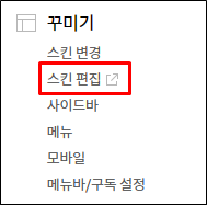 우선, [복사] 버튼을 누르셔서 복사하신 뒤, 티스토리의 [블로그 관리] 메뉴에서 [꾸미기] - [스킨 편집]을 눌러 스킨 편집 페이지로 이동합니다.