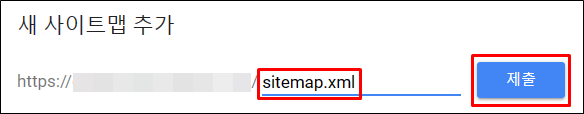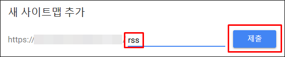 '새 사이트맵 추가' 페이지에서 차례대로 'sitemap.xml'과 'rss'를 입력해 주시면 됩니다.