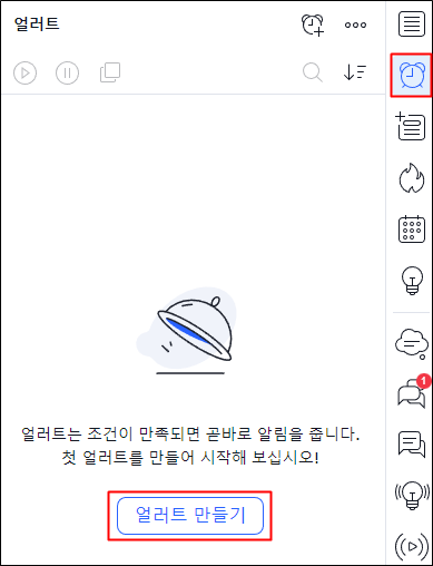 종목의 원하시는 가격을 지정하시면 알람이 발생하도록 설정할 수 있습니다.