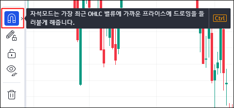 가장 가까운 캔틀 차트에 자동으로 선이 붙게 해 줍니다. 이 도구도 단축키가 지정되어 있어서 단축키를 이용하시는 편이 훨씬 편할 것 같습니다. (단축키는 [Ctrl]입니다.)