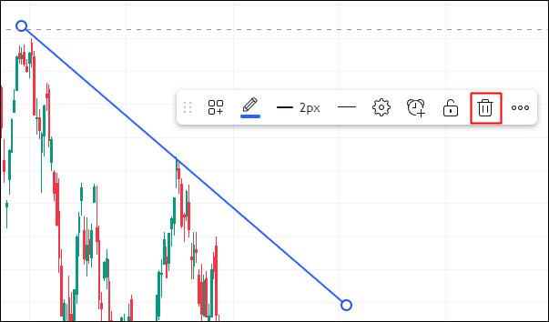추세선의 제거는 선을 그리시면 차트 위에 위젯이 뜨는데 휴지통 모양의 버튼을 누르시면 삭제가 가능합니다.