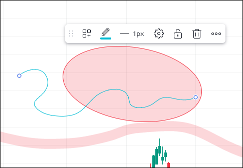 커서 변경은 말 그대로 커서를 변경하는 기능인데요. 지우개 커서로 변경해서 지금까지 차트에 그린 선이나 글자를 지울 수도 있습니다.