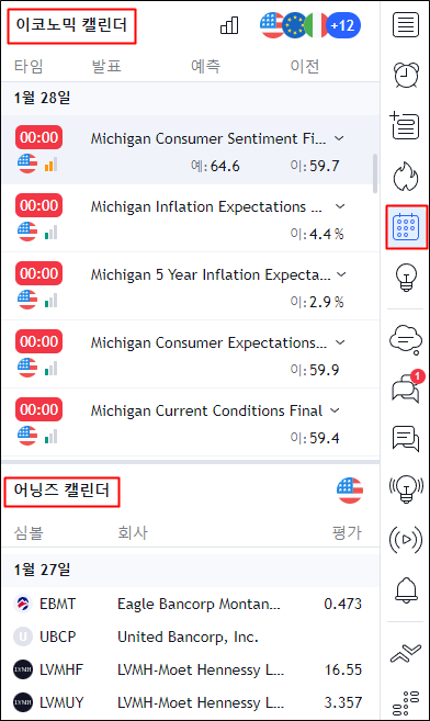 경제 캘린더도 트레이딩 뷰에서 확인이 가능합니다.