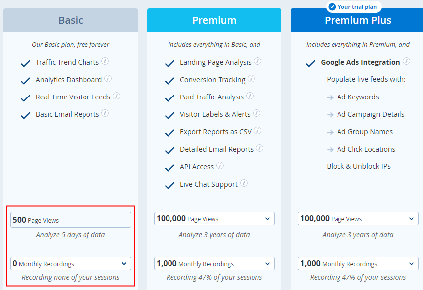 무료로 이용하실 경우 500 페이지 뷰 정도의 데이터를 보관하며, 5일 정도의 데이터라고 합니다.