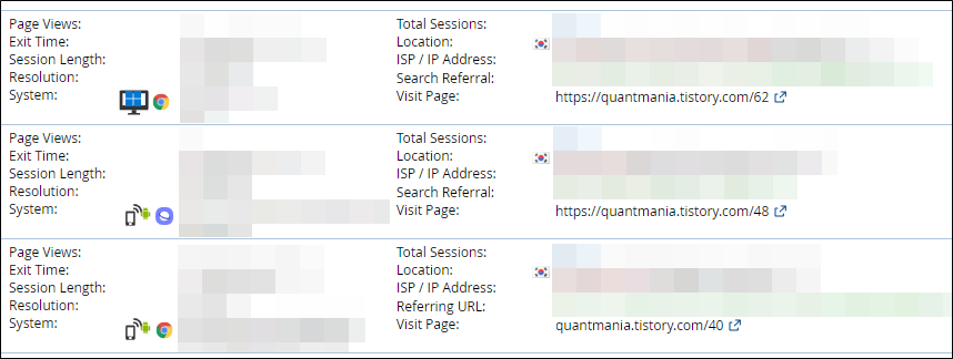 스탯카운터에 운영하시는 블로그를 등록하시면, 방문자의 IP와 광고클릭 등의 정보를 확인해 보실 수 있습니다.